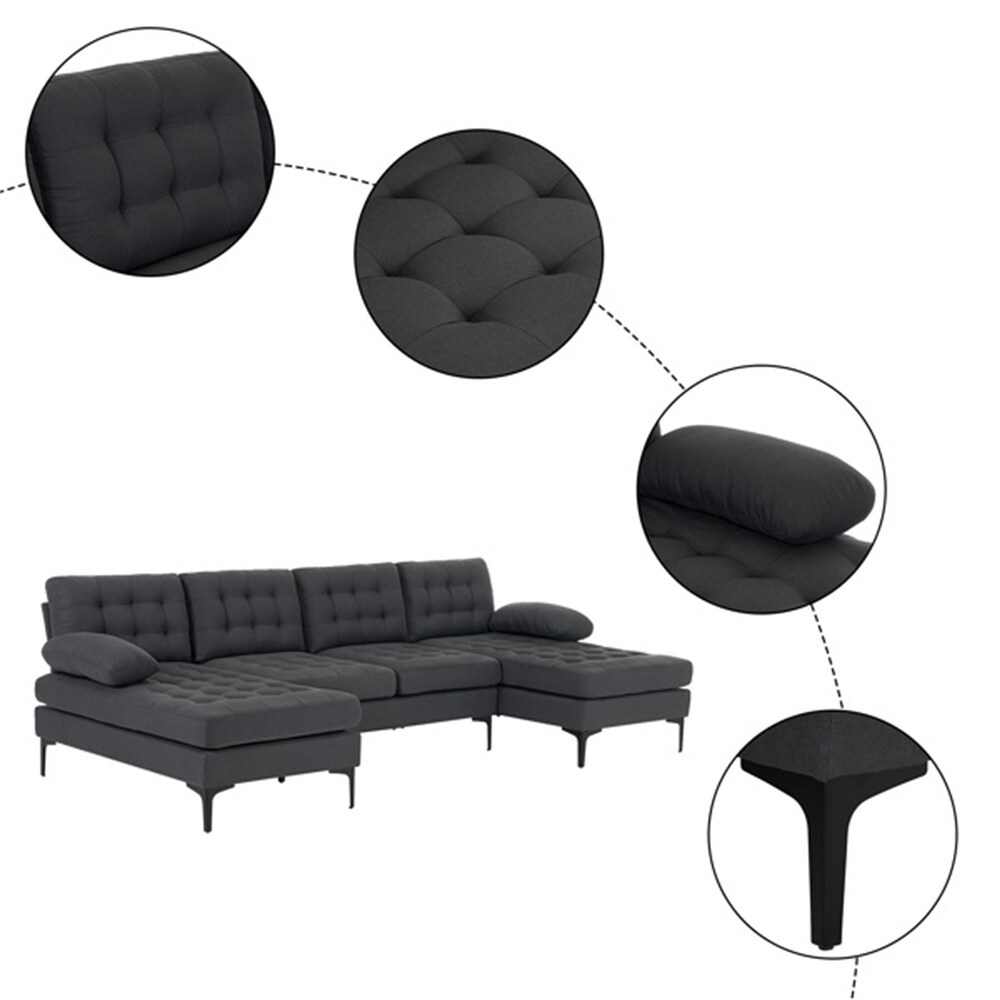 Are you looking for a comfortable sofa for your family? If so; this FCH U-shaped Soft-Covered Armrest Backrest Seat Pull Point Wooden Frame Iron Frame Black Feet Indoor Sectional Sofa is highly recommended to you. This modern sofa can provide ample seating when guests are over; and easy to lay down on for a nap. The cushions you sit on are nice and firm. Don't worry about sinking in. So what are you waiting for?